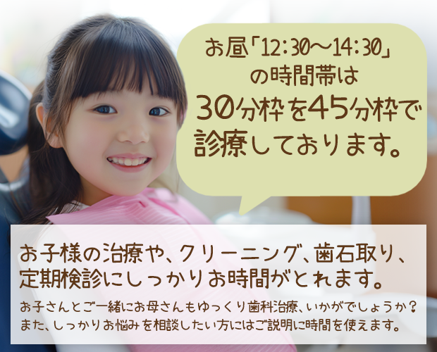歯医者とは、歯が痛くなったときに行くところでしょうか?かつてはそうでした。しかし、今は違います。今は、歯が抜けたり痛くなったりするのを防ぐ為に行くところなのです。10年20年後も変わらず好きな物を食べ、素敵な笑顔でいられるために、何か症状が出る前に是非いらして下さい。特に、小さなお子さんがいらっしゃる方は、お子さんに歯で苦労しない人生をプレゼントしてみませんか?それは一生の宝物になるはずです。