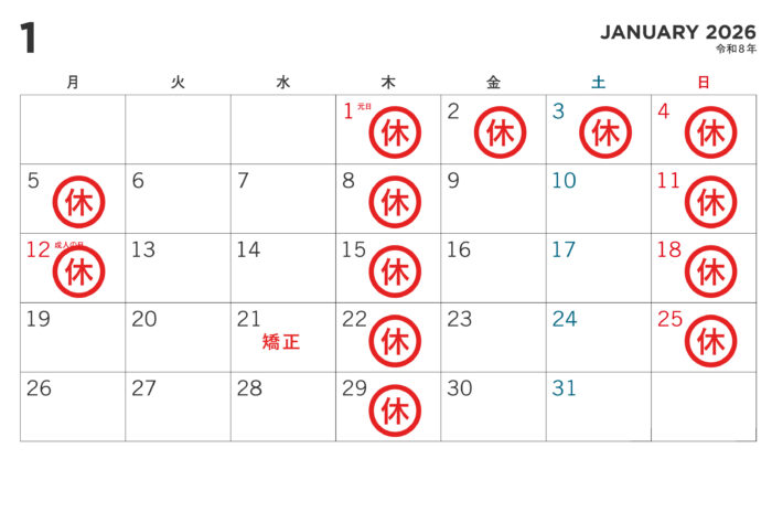 ※1/21(水) 矯正日